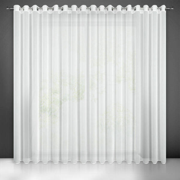 100%polieszter, 160cm magas, 250cm széles, tetején ráncolóval, alján ólommal, modern nyírt mintázatú hófehér voila kész függöny, vasalást nem igényel,