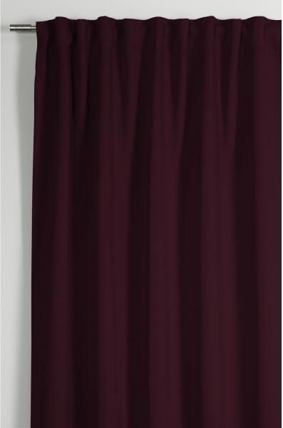 sötétítő drapéria, súly 260g/m2, nem engedi át a napfényt, megakadályozza a zaj behatolását, felvarrt univerzális ráncolószalag, szegélyei beszabva, csipeszre vagy kampóra rögzíthető.