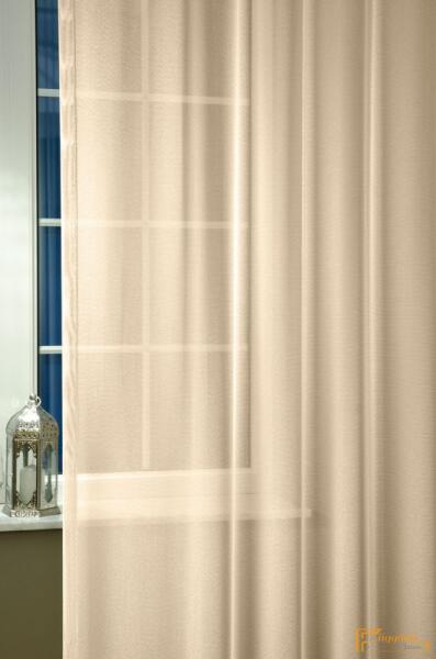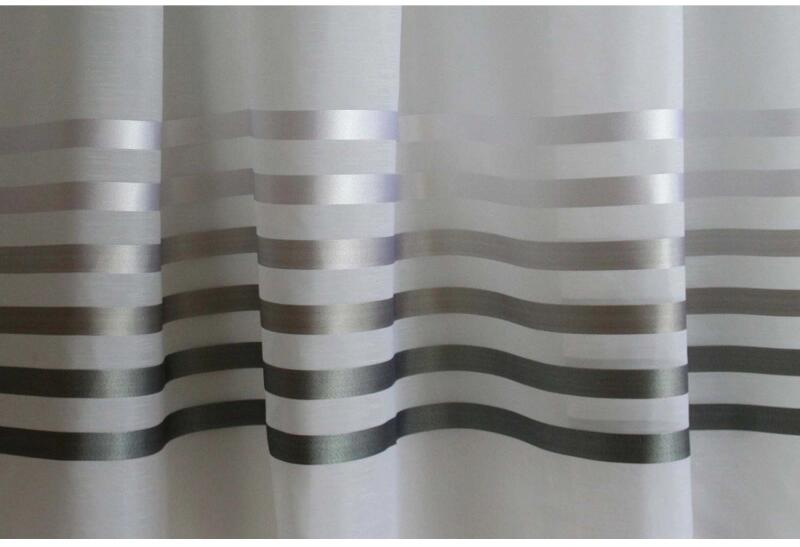 Bordűrös függöny, az alsó részén vízszintes, karakteres fényű, szatén csíkokkal. A függönyt az áruházban az Ön által kívánt méretre vágják.