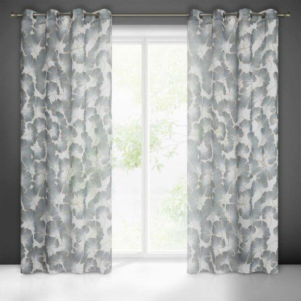 Klasszikus függöny lenvászon textúrájú anyagból, pasztell színű virágminta díszíti. Közepes fokú árnyékolást biztosít. Könnyen vasalható szövet. Szélesség: 140 cm, hossz: 250 cm, színe: fehér/szürke. Grammsúly: 130 GSM. Összetétel: 100% poliészter