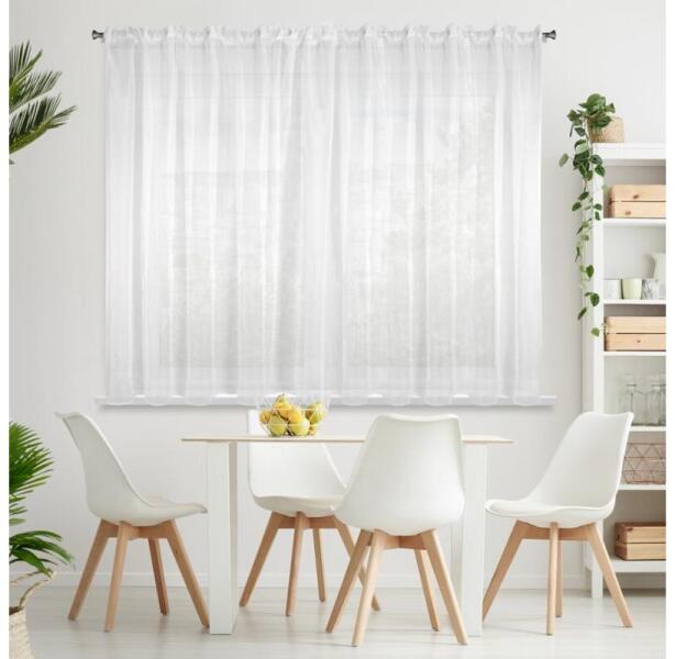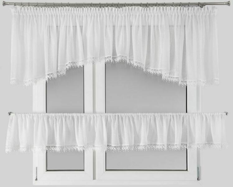 dekoratív drapéria LONETA, Spanyol szövetből varrva, súly 190g/m2, felvarrott univerzális ráncolószalag, szegélye beszabva, csipeszre vagy kampóra rögzíthető.