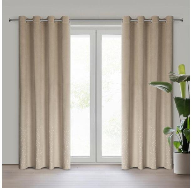 Ariadna apró kövekkel díszített bársony függöny Bézs 140x250 cm szép dekoráció és árnyékoló is egyben. Európa egyik legnagyobb lakástextil forgalmazójaként a függöny gyártója, az Eurofirany kínálatának kialakításában mindig fontos szerepet játszik a minőség és a trendek folyamatos követése.