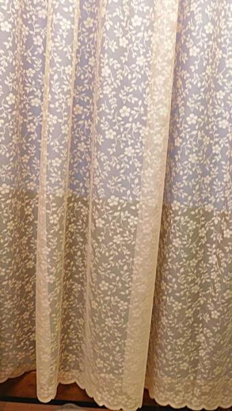 100%polieszter, 180cm magas, 300cm széles, tetején ráncolóval, mellyel a kívánt méretre behúzható, csipeszelhető, kampóval akasztható, vasalást nem igényel, szép esésű fényáteresztő