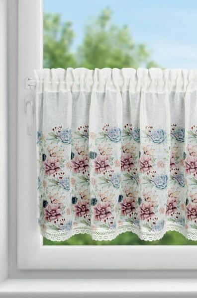 Egyik kedvenc virágja a rózsa? A Dora vitrázs függöny rózsa virág mintával, valamint pamut csipke szegéllyel igazán egyedi kiegészítője lesz a belső terének. Alagutas kialakításának köszönhetően gyorsan felhelyezhető és cserélhető. Az Eurofirany fényáteresztő függönyei tökélesen illeszkednek a modern, klasszikus és romantikus elrendezésű szobákba. A függöny ha