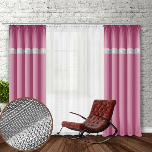 sötétítő drapéria, súly 260g/m2, nem engedi át a napfényt, megakadályozza a zaj behatolását, felvarrt univerzális ráncolószalag, szegélyei beszabva, csipeszre vagy kampóra rögzíthető.