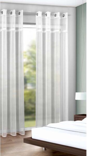 Ez a kiváló minőségű, fűzőlyukas függöny meghitt hangulatot áraszt otthonában. Finom, strasszköves mintája stílusos hangulatot teremt és ideálisan kombinálható más lakástextíliákkal. A praktikus fűzőlyukaknak köszönhetően bármely stílusú garnitúrára könnyedén felszerelhető. 30 fokon, kímélő programon mosható.