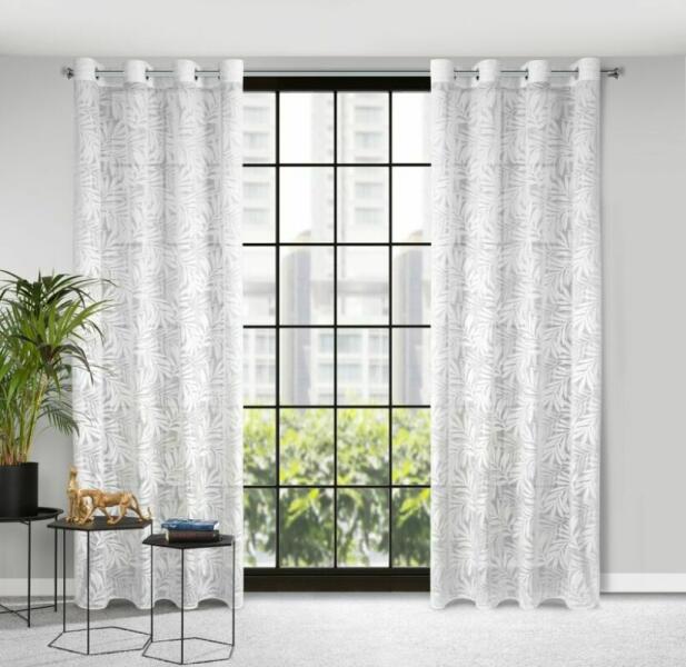 Kész függöny kiváló minőségű dekoratív anyagból, tartós és erős 100% poliészter anyagból. Az ezüst gyűrűk pántja nagyon jól tolerálja a kezelési eljárásokat, és gazdag színe hosszú használat után sem veszíti el vitalitását.