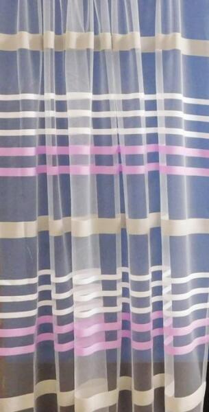 100%polieszter, 130cm magas, 160cm széles, tetején ráncolóval, amivel a kívánt méretre behúzható, hátoldalába kampókat akaszthatunk, de csipesszel is felrakható, Légies fátyolszerű átlátszó sűrűbb szövésű anyag, a lakás bármely ablakára kiváló,