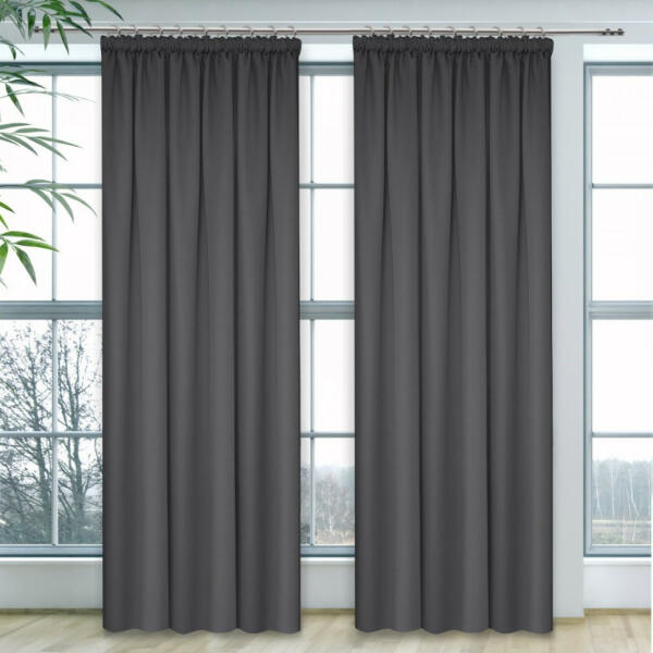 Kész függöny kiváló minőségű dekoratív anyagból, tartós és erős 100% poliészter anyagból. A gyűrődő szalag függönye nagyon jól tűri a kezelési eljárásokat, és gazdag színe hosszú használat után sem veszíti el vitalitását.