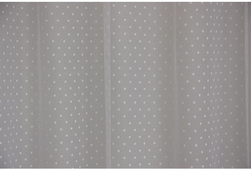 Fehér színű, pöttyös jacquard függöny, amely a vidám színvilágával kellemes és bohém hangulatot varázsol az otthonába. Mintázata révén kiválóan alkalmas kisebb, szűkösebb belterekbe, ugyanis optikailag megnyújtja, még a legzsúfoltabb helyiségeket is. Az egyszerűségének köszönhetően a bármilyen színű sötétítőfüggönyhöz illik. A függöny anyaga a legmoderne