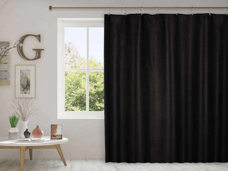 sötétítő drapéria, súly 260g/m2, nem engedi át a napfényt, megakadályozza a zaj behatolását, felvarrt univerzális ráncolószalag, szegélyei beszabva, csipeszre vagy kampóra rögzíthető.