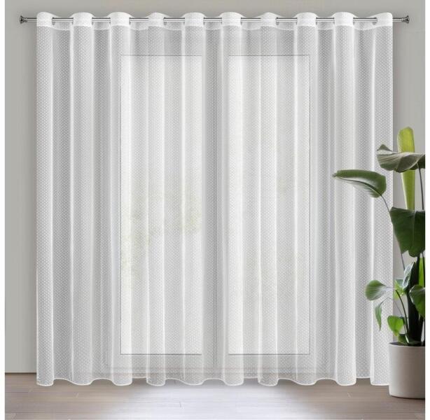 Termék részletek100%polieszter, 215cm magas, 300cm széles, tetején ráncolóval, alján ólommal, modern nyírt mintázatú hófehér voila kész függöny,