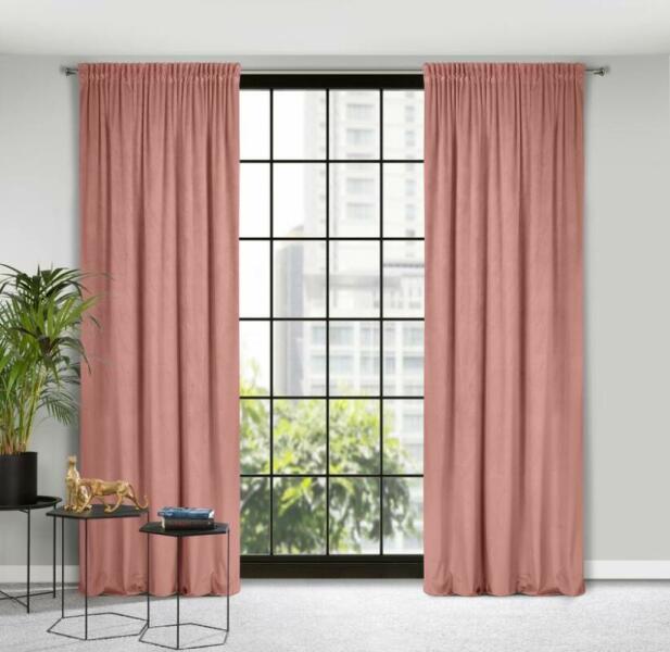 sötétítő drapéria, súly 260g/m2, nem engedi át a napfényt, megakadályozza a zaj behatolását, felvarrt univerzális ráncolószalag, szegélyei beszabva, csipeszre vagy kampóra rögzíthető.