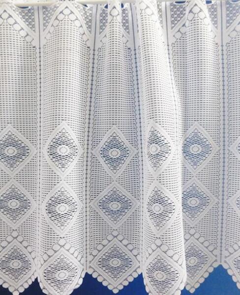 teflonos, 100% poliészter, felvarrt univerzális ráncolószalag, szegélyei beszabva, csipeszre vagy kampóra rögzíthető.