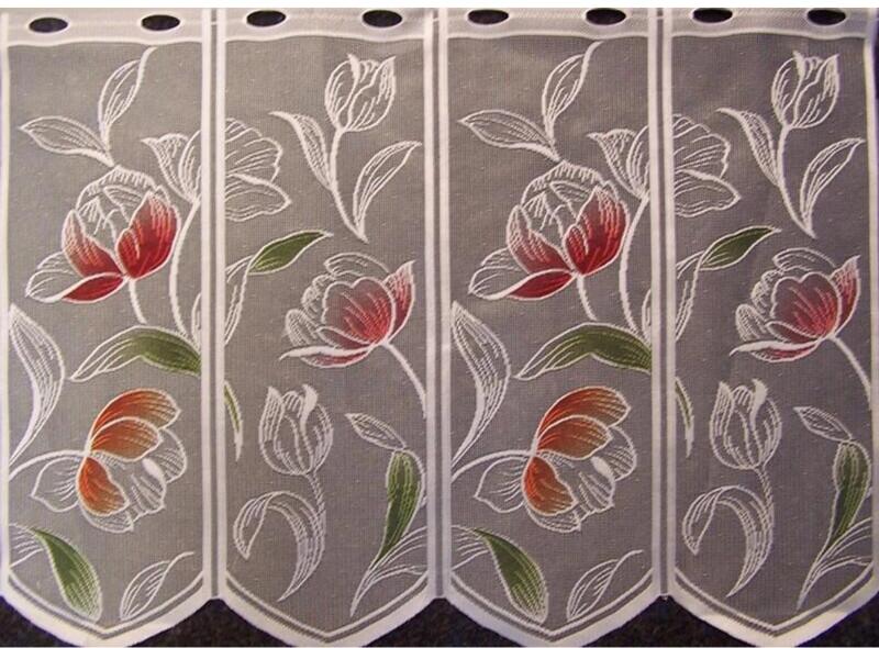 A fehér színű, 90 cm magas Albani vitrázs függöny hurkokkal, fehér, színes virágokkal, szebbé teszi otthonát. Anyag: 100% poliészter. Méteráru, megrendelhető az áruházban. A függönyt az áruházban az Ön által kívánt méretre vágják.