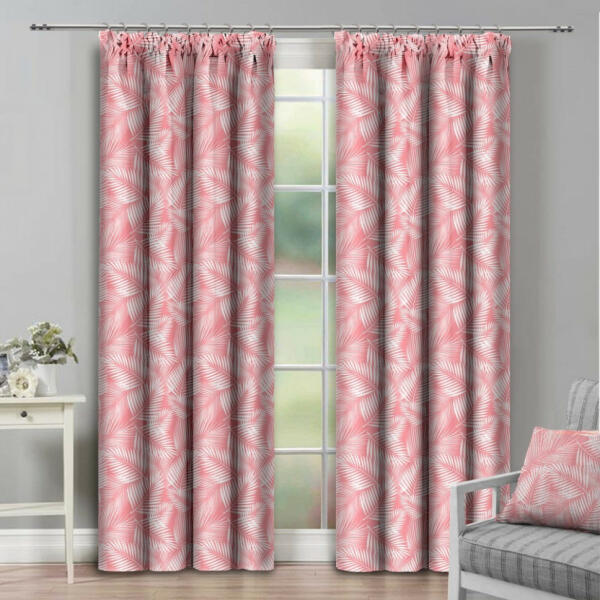 dekoratív szövet Rongo, 100 % poliészter, sima, nem gyűrődő, színstabil szövet, felvarrt univerzális ráncolószalag, szegélye beszabva, csipeszre vagy kampóra rögzíthető.