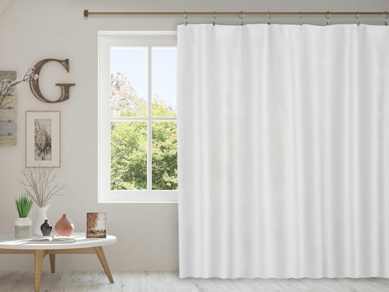 sötétítő drapéria, súly 260g/m2, nem engedi át a napfényt, megakadályozza a zaj behatolását, felvarrt univerzális ráncolószalag, szegélyei beszabva, csipeszre vagy kampóra rögzíthető.