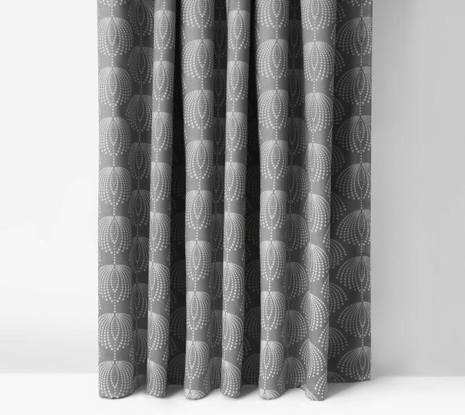 pamut drapéria, felvarrt univerzális ráncolószalag, szegélye beszabva, 100 % pamutszövet, súly 145g/m2, csipeszre vagy kampóra rögzíthető.