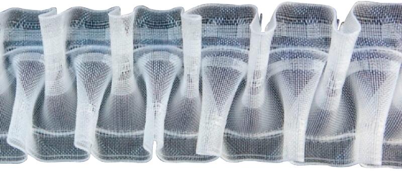 Függönyráncoló, behúzószalag. Ráncolási arány: 1:2,5. Szélesség 50 mm, méterben kapható. A függönyráncolót az áruházban az Ön által kívánt méretre vágják.