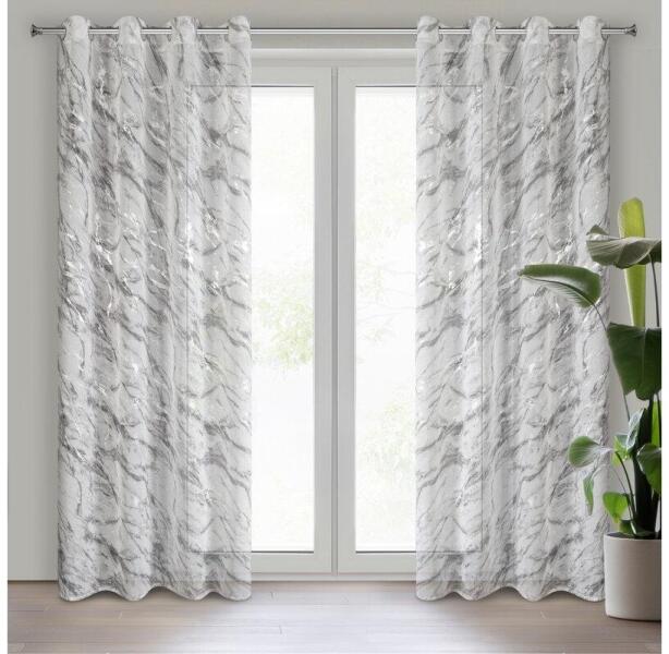 Az Alivia fehér - szürke függöny márvány mintájú nyomattal van ellátva. Könnyű, vékony anyaga átengedi a fényt. Ringlivel könnyen felakasztható. Az Eurofirany sötétítő és dekor függönyei kellemes tapintású szövetből készülnek. Gyakorlati funkciójukat tökéletesen betöltik a függönyök, de emellett szép dekorációként is szolgálnak. Európa egyik legnagyobb lak