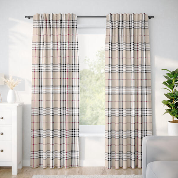 pamut drapéria, felvarrt univerzális ráncolószalag, szegélye beszabva, 100 % pamutszövet, súly 145g/m2, csipeszre vagy kampóra rögzíthető.