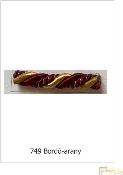 ◤ Kategória: Függöny zsinór ◤ Mérete: 8 mm ◤ Szín: Bordó-arany ◤ Anyagösszetétel: 70% pamut 30% acetát A megjelölt ár 1 méterre vonatkozik! Legkisebb rendelhető mennyiség: 5 méter Kategória: Függöny zsinór Szín: Bordó-arany Anyagösszetétel: 70% pamut 30% acetát Legkisebb rendelhető mennyiség: 5 méter A csavart dekor zsinórt/füles zsinórt bútorok kárpitozás