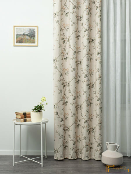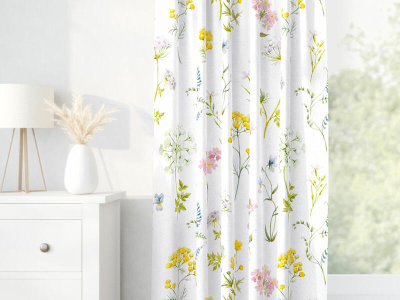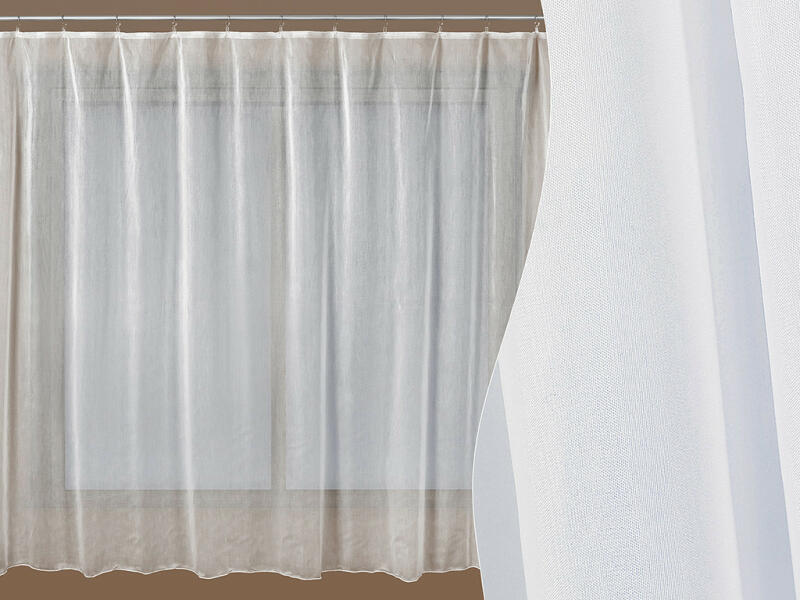 100%polieszter, 250cm magas, 300cm széles, tetején ráncolóval, amivel a kívánt méretre behúzható, alul széles bordűrös ólommal, vasalásmentes