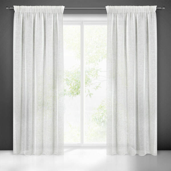 Ezt az átlátszó függönyt lehet használni a nappaliban, hálószobában, irodai helyiségekben stb. Ez az áttetsző függöny némi privát szférát biztosít, ugyanakkor természetes fényt is enged a szobába. Ezek a fátyolfüggönyök egyszerű, mégis kortalan dizájnnal rendelkeznek és segítenek a kényelmes, intim hangulat megteremtésében. A karikáknak köszönhetően a függön