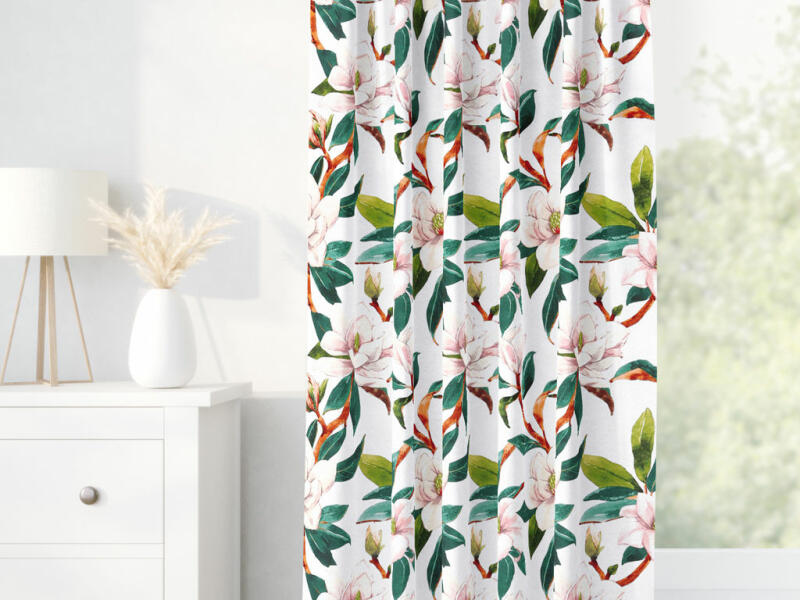 CINTINA / 01 140 cm x 175 cm fehér színű nyomott voile fehér virágmintával ráncolószalaggal, összetétele 100 % poliészter.