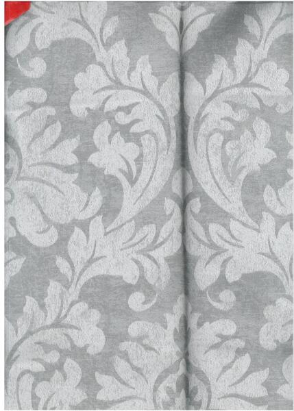Dekor anyag, Ornament mintával ezüstszürke színben, 140 cm széles. Két színben kapható. A dekoranyagot az áruházban az Ön által kívánt méretre vágják.