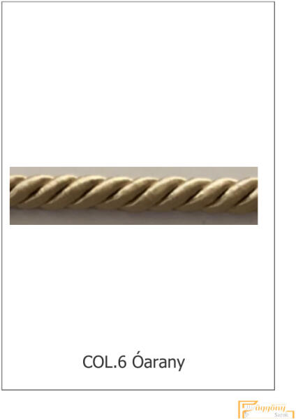 ◤ Kategória: Függöny zsinór ◤ Zsinór vastagsága: 5mm ◤ Szín: Óarany/span> ◤ Anyagösszetétel: 70% Acetát 30% Viszkóz A megjelölt ár 1 méterre vonatkozik! Legkisebb rendelhető mennyiség: 5 méter Kategória: Függöny zsinór Szín: Óarany Anyagösszetétel: 70% Acetát 30% Viszkóz Legkisebb rendelhető mennyiség: 5 méter Nyolc mm átmérőjű zsinór, aminek a segít