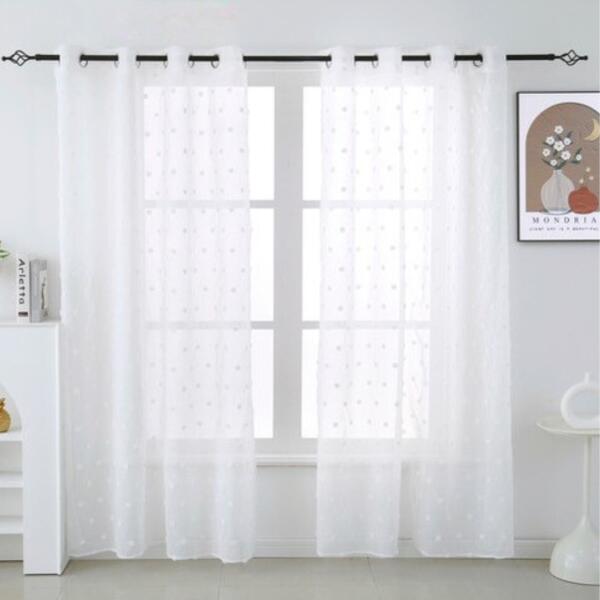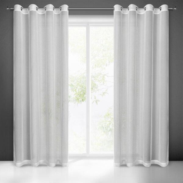 Az elegáns és puha fehér Brisa függöny diszkrét pontozott mintával, 140x250 cm méretű. Ez a függöny ideális választás mindenkinek, aki romantikát és frissességet szeretne vinni otthonába. Kiváló minőségű poliészterből készült, amely hosszú élettartamot és könnyű kezelhetőséget biztosít. Könnyűségének köszönhetően elegendő fényt enged be otthonába, kelle