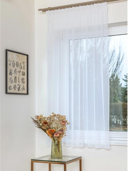DINA/03 140x175 cm egyszínű fehér voile függöny ólomzsinórral, ráncolószalaggal, 100% poliészter.