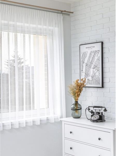POLPE/01 300x175 cm fehér rácsos fényáteresztő függöny ólomzsinórral, ráncolószalaggal, 100% poliészter.