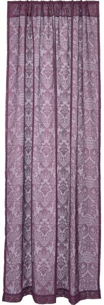 A Blush Bordeaux kollekció ezen függönye dekoratív belátás elleni védelmet nyújt az ablakon, és otthonos légkört teremt. Előre gyártott bújtatóval felszerelve, hogy könnyen rá lehessen tolni a függönyrúdra vagy a kötélrendszerre. A függöny poliészterből és viszkózból készült. Max. 30 °C-on mosható mosógépben. Formatervezését finom, kidolgozott minta és lila sz