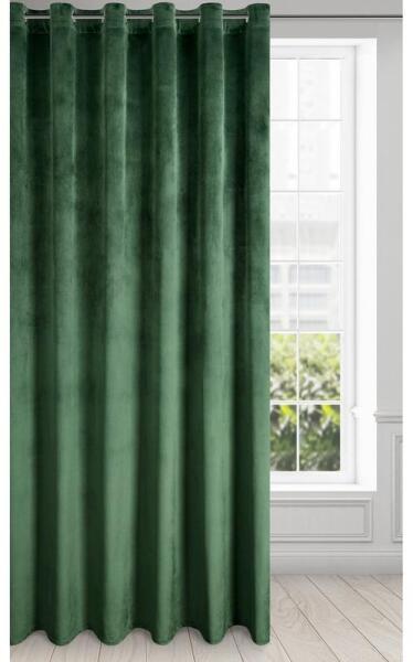 Egyszínű bársony sötétítő függöny, szélesség: 215 cm, hossz: 250 cm, színe: sötétzöld. Grammsúly: 200 GSM. Összetétel: 100% poliészter
