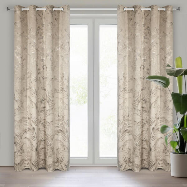 Debra pálmalevél mintás bársony függöny Bézs 135x270 cm szép dekoráció és árnyékoló is egyben. Európa egyik legnagyobb lakástextil forgalmazójaként a függöny gyártója, az Eurofirany kínálatának kialakításában mindig fontos szerepet játszik a minőség és a trendek folyamatos követése.