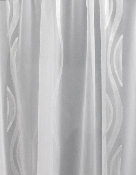 100%polieszter, 160cm magas, 330cm széles, tetején ráncolóval, alján ólommal, modern nyírt mintázatú hófehér voila kész függöny, vasalást nem igényel