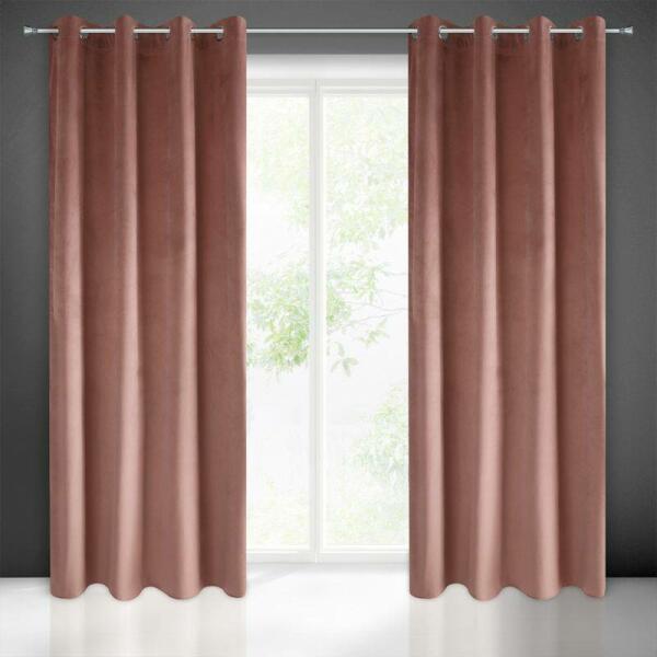 Készre varrott bársony sötétítő függöny. Egyszínű anyaga puha tapintású és jellegzetes bársonyos fénnyel gyönyörködteti a szemet. A vaskos szövet magas fokú árnyékolást tesz lehetővé. Szélesség: 140 cm, hossz: 250 cm, színe: sötét rózsaszín. Grammsúly: 215 GSM. Összetétel: 100% poliészter