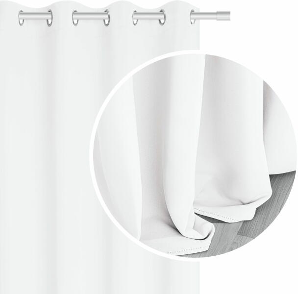 A letisztult és lágy fehér színben készült TAMIA sötétítő függöny nagyon elegáns. Az univerzális 250 cm magasságával és 140 cm szélességével szinte bármelyik helységbe megfelelő. A sötétítő függönyök remek megoldást jelentenek a világos szobákba, ahová sokat besüt a nap. A drapéria nem engedi be a fényt a szobába sem éjjel, sem nappal. Sima, matt anyagból k