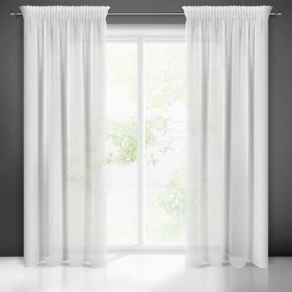 dekoratív szövet Rongo, 100 % poliészter, sima, nem gyűrődő, színstabil szövet, felvarrt univerzális ráncolószalag, szegélye beszabva, csipeszre vagy kampóra rögzíthető.