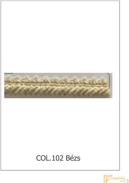 ◤ Kategória: Függöny zsinór ◤ Méret: 15 mm ◤ Szín: Bézs ◤ Anyagösszetétel: 70% Acetát 30% Viszkóz A megjelölt ár 1 méterre vonatkozik! Legkisebb rendelhető mennyiség: 5 méter Kategória: Függöny zsinór Szín: Bézs Anyagösszetétel: 70% Acetát 30% Viszkóz Legkisebb rendelhető mennyiség: 5 méter 50 méter/tekercs Zsinóros bortni, ami 15 mm széles. Látványosan k
