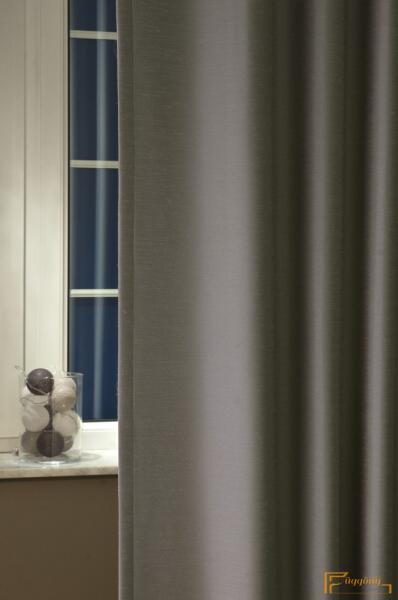 dekoratív szövet Rongo, 100 % poliészter, sima, nem gyűrődő, színstabil szövet, felvarrt univerzális ráncolószalag, szegélye beszabva, csipeszre vagy kampóra rögzíthető.