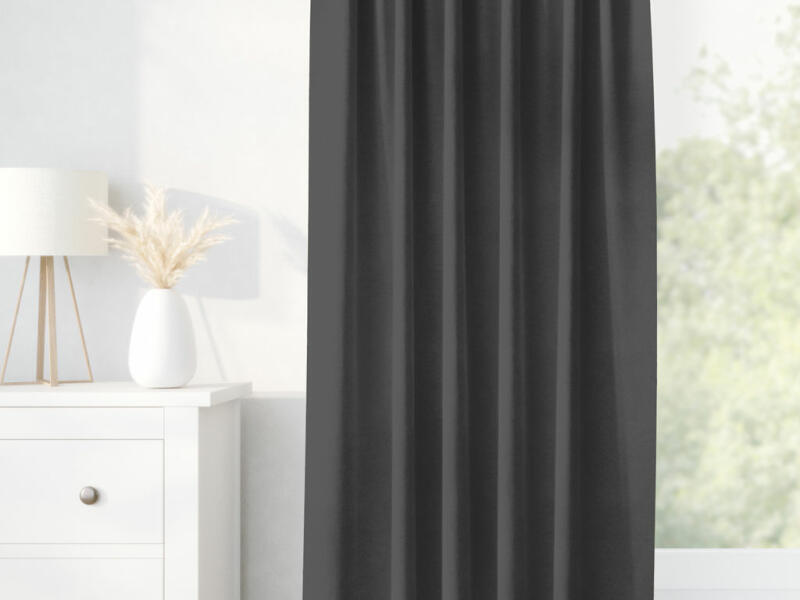 sötétítő drapéria, súly 260g/m2, nem engedi át a napfényt, megakadályozza a zaj behatolását, felvarrt univerzális ráncolószalag, szegélyei beszabva, csipeszre vagy kampóra rögzíthető.