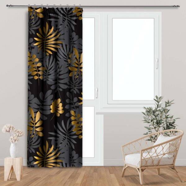 sötétítő drapéria, súly 260g/m2, nem engedi át a napfényt, megakadályozza a zaj behatolását, felvarrt univerzális ráncolószalag, szegélyei beszabva, csipeszre vagy kampóra rögzíthető.