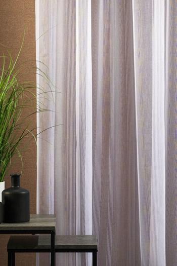 100%polieszter, 160cm magas, 270cm széles, tetején ráncolóval, alján ólommal, természetes hatású vastagabb anyag jó fényáteresztő, vasalást nem igényel,