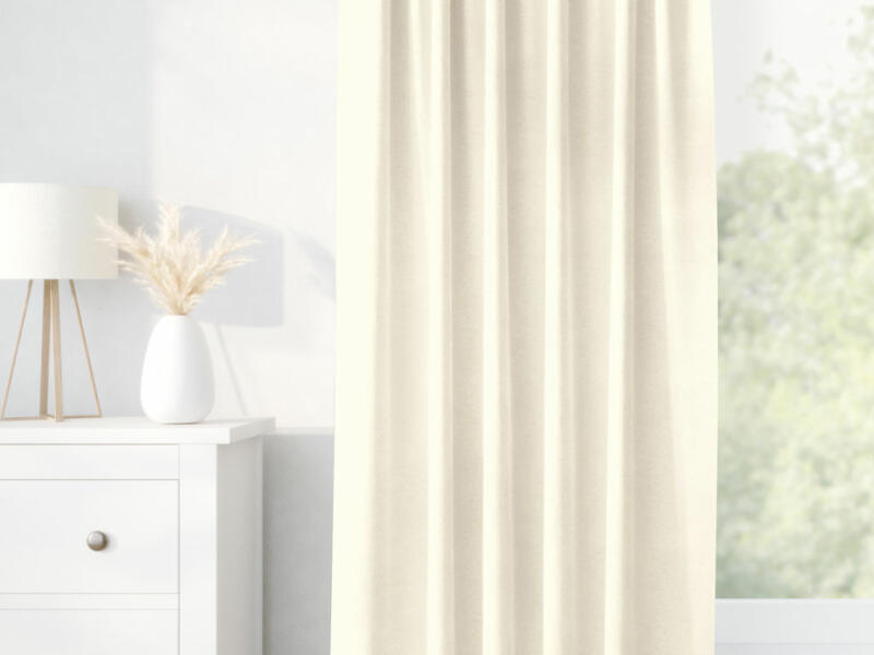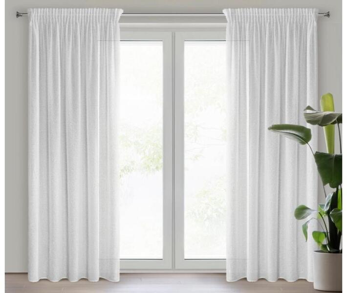 kész dekoratív drapéria, 100 % poliészter, súly 160g/m2, felvarrt univerzális ráncolószalag, szegélye beszabva, csipeszre vagy kampóra rögzíthető.