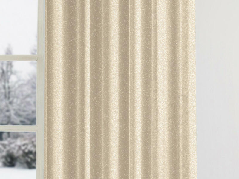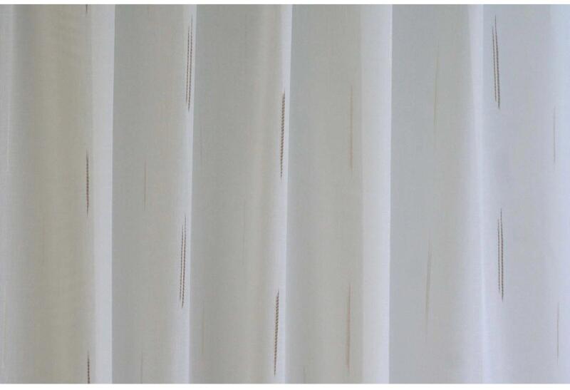 Fényáteresztő ecrü függöny, melynek magassága 300 cm. Függőleges, ecrü/arany beszövésekkel diszített. Összetétele 100 % poliészter. A függönyt az áruházban az Ön által kívánt méretre vágják.