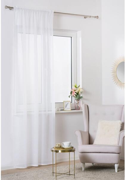 Egyszínű etamin készfüggöny, szélesség: 350 cm, hossz: 150 cm, színe: fehér. Grammsúly: 50 GSM. Összetétel: 100% poliészter