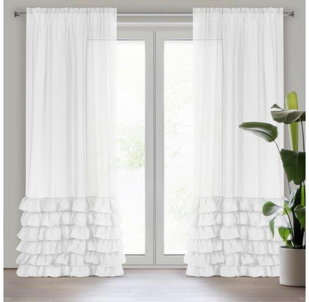Kész függöny kiváló minőségű dekoratív anyagból, tartós és erős 100% poliészter anyagból. A gyűrődő szalag függönye nagyon jól tűri a kezelési eljárásokat, és gazdag színe hosszú használat után sem veszíti el vitalitását.